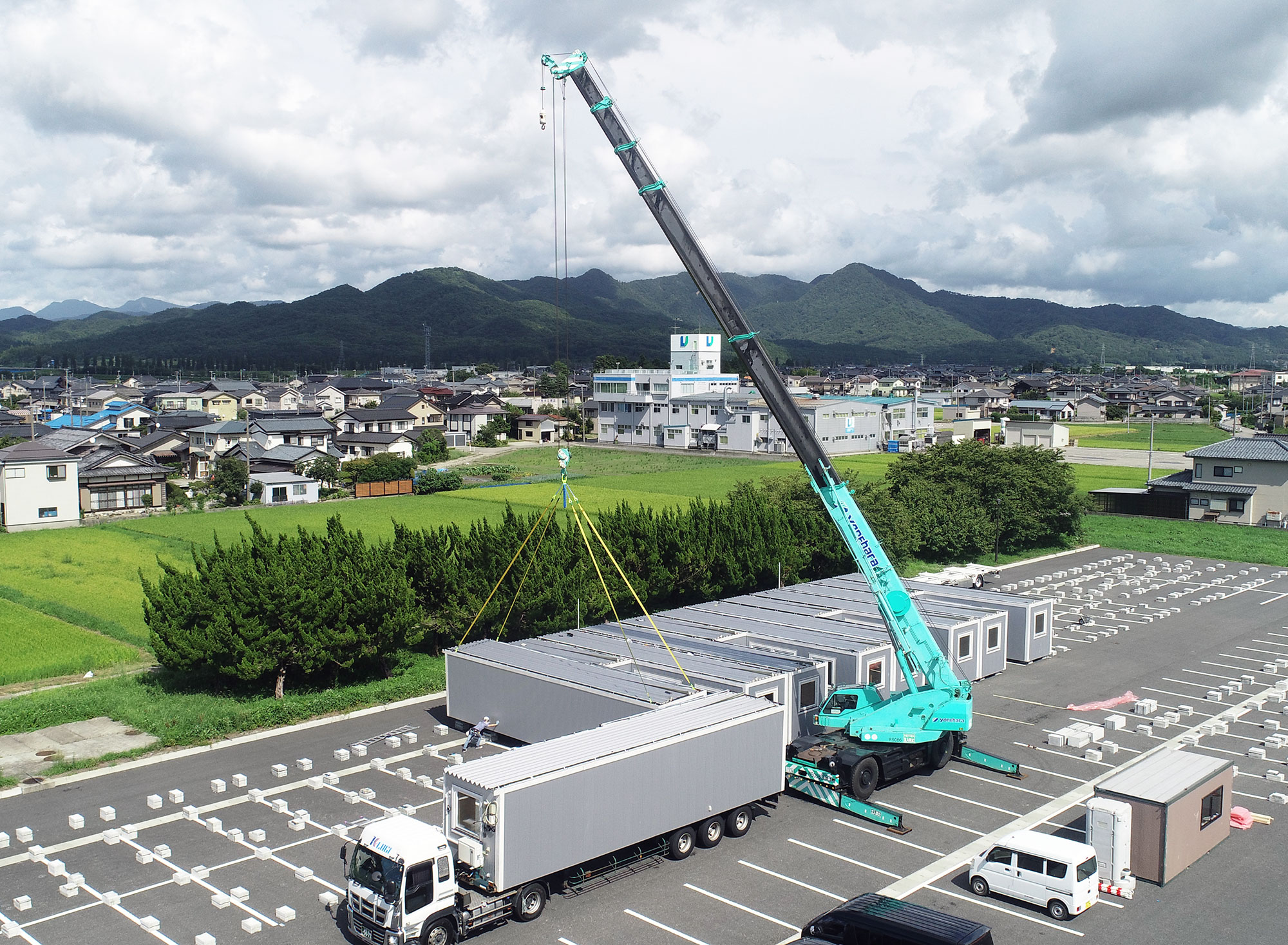 ムービングハウスの実績は、数字だけでなく、実際の被災地支援の現場で積み重ねられてきました。昨年の台風被害では、八丈島に6戸の応急仮設住宅を供給し、初めて離島での仮設住宅建設という難しい挑戦にも取り組みました。また、一昨年1月に発生した石川県能登沖地震では、応急仮設住宅511戸に加え、約100人が利用できる宿舎、学生寮、さらには仮設店舗まで含めた多面的な支援が行われました。2018年の西日本豪雨災害以降、これまでに8回の自然災害支援に携わってきた実績は、ムービングハウスが単なる「建物」ではなく、「暮らしの再建」を支える仕組みであることを物語っています。